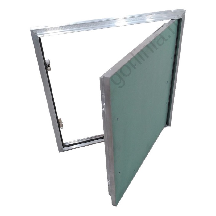 Размер приведен по внешним габаритам рамы. Полотно выставляют в уровень стены, крепят на саморезы в торец монтажного профиля перегородки, затем каркас фальшстены обшивают листом ГВЛВ 12,5 мм с нахлестом на внешнюю четверть коробки согласно монтажной схемы.