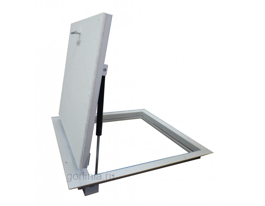 Потайные напольные люки АМО с амортизаторами выпускаются из стальной трубы сечения 30х20 мм и горячекатанного сортового уголка 40х40х4 мм. Окрашен в высокотемпературной камере порошковым покрытием. Предназначен для использования внутри помещений. Изделие оснащено амортизирующими подъемниками, внутренними петлями, замком с язычком и съемной ручкой. Тип открывания шарнирного механизма: откидной с одной осью вращения. Потайная крышка двери с гипсоволокном на металлокаркасе подготовлена под облицовку керамической плиткой (ламинированной доской). Толщина пирога (материал + клеевой слой) не более 15 мм.