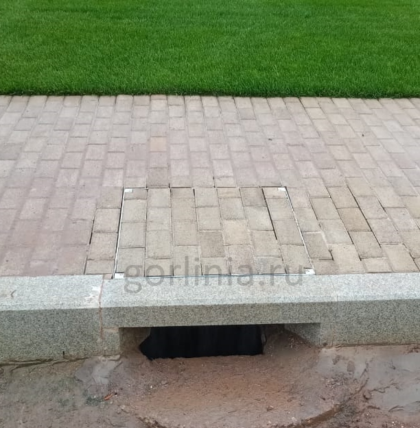 закладывается уличным покрытием до отметки чистового пола: брусчаткой, траттуарной плиткой, бетоном или асфальтом.