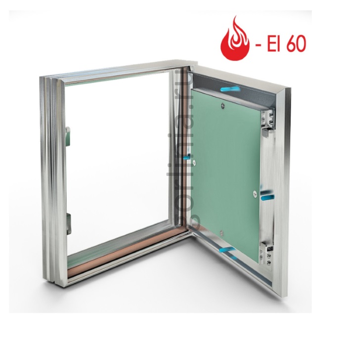 Система открывания створки распашная на осевых внутренних петлях. Все элементы фурнитуры скрыты внутри, чтобы после отделки люк стал невидимкой.