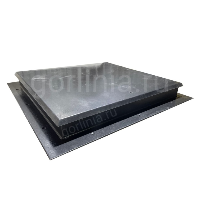 Откидная крышка заполнена сверху гладким кровельным листом 2 мм с загнутыми книзу краями, вылетающими на 25 мм за периметр коробки. Внутри каркаса створки между ребрами обвязки проложен рулонный минеральный утеплитель 50 мм, подшитый снизу листом 1 мм.