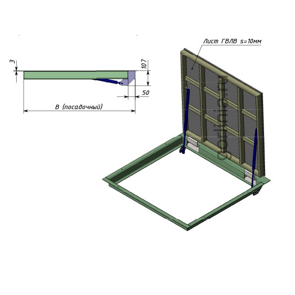 Ограничения: стальной люк из листового металла рекомендован к установке в местах без постоянной нагрузки от ходжения по дверце. Для проходных зон используйте модель АМО 1100х1000 из сортового проката.