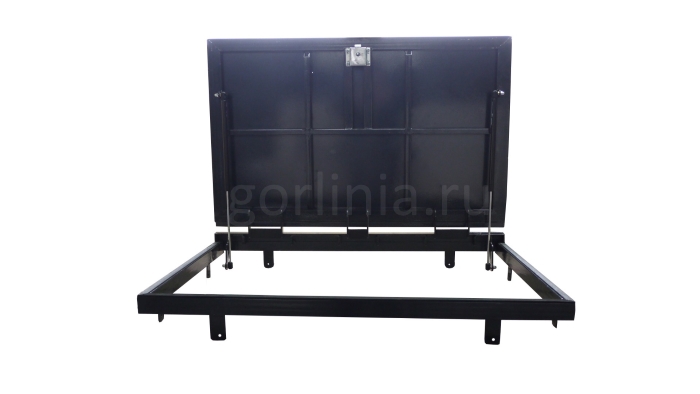 Рама без наличников выставляется в существующем отверстии 67*90 см с допусками, крепится в перекрытии через вертикальные пластины даже когда Ваш ремонт закончен и пол выложен керамогранитом или настелена ламинированная доска.